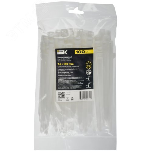 Хомут P6.6 стандартный белый 7.6х150мм 100шт/упак IEK
