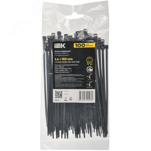 Хомут P6.6 стандартный черный 3.6х150мм 100шт/упак IEK