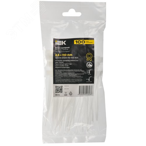 Хомут P6.6 маркерный белый 2.5х110мм 100шт/упак IEK