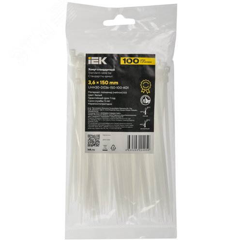 Хомут P6.6 стандартный белый 3.6х150мм 100шт/упак IEK