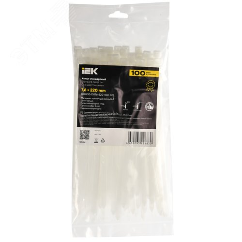 Хомут P6.6 стандартный белый 7.6х220мм 100шт/упак IEK