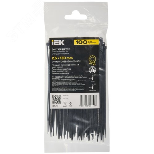 Хомут P6.6 стандартный черный 2.5х130мм 100шт/упак IEK