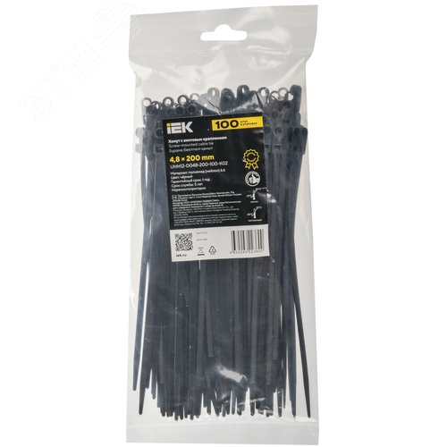 Хомут P6.6 с винтовым креплением черный 4.8х200мм 100шт/упак IEK