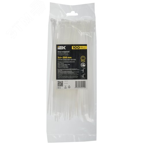 Хомут P6.6 стандартный белый 3.6х200мм 100шт/упак IEK