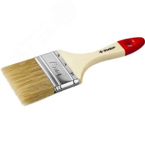 Кисть плоская ''УНИВЕРСАЛ-МАСТЕР'', натуральная щетина, деревянная ручка, 75мм