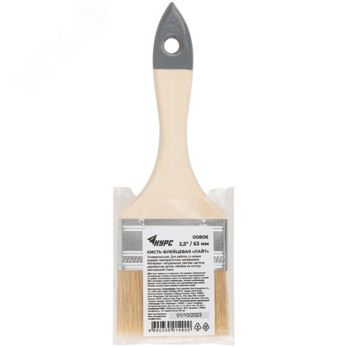 Кисть флейцевая ''Лайт'', натур. cветлая щетина, деревянная ручка 2.5'' (63 мм)