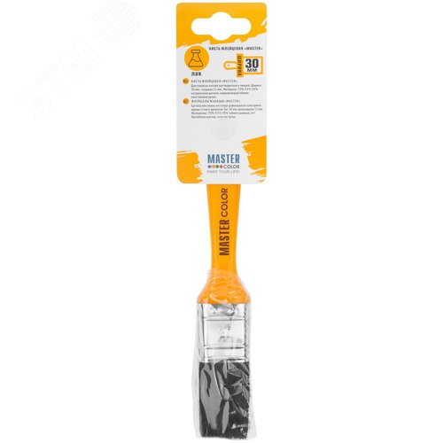 Кисть флейцевая, толщ. 12 мм, 70 ПБT/30 чёрн.натур. щетина, нерж. обжим, пласт.ручка, ширина 30 мм