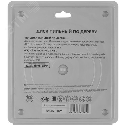 Диск пильный для циркулярных пил по дереву 210x32x40T + 3 кольца 32/30, 30/20, 20/16 мм
