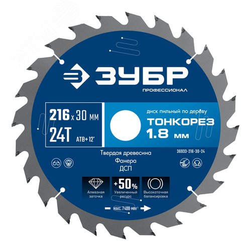 Диск пильный по дереву, тонкий рез, Профессионал Тонкорез 216х30 x 1.8 мм, 24Т