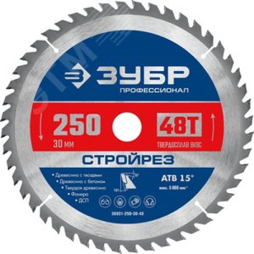 Диск пильный по строительной древесине Стройрез 250х30мм 48Т