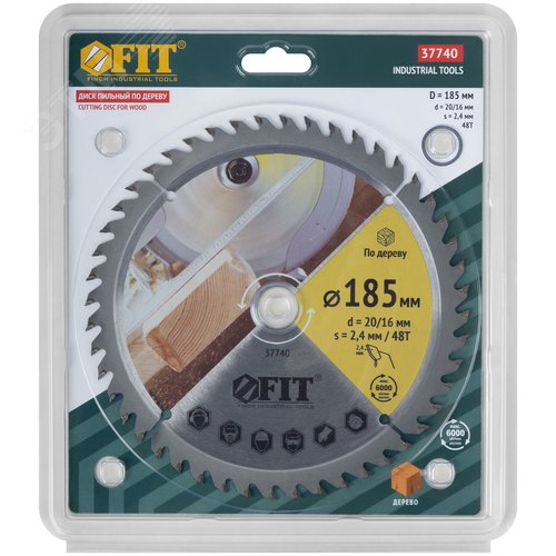 Диск пильный для циркулярных пил по дереву 185x20/16x48T