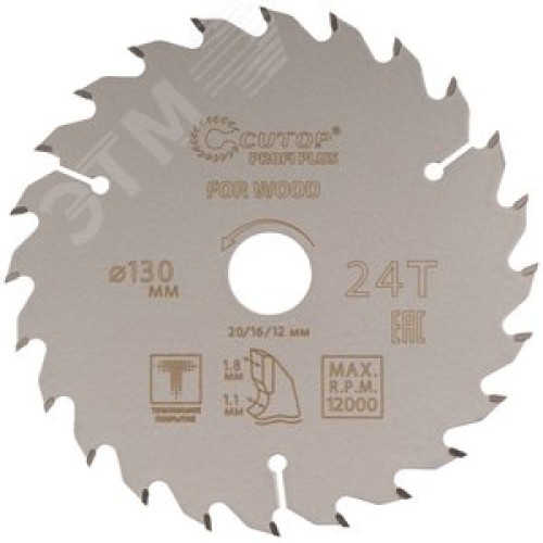 Диск пильный по дереву с тефлоновым покрытием 24Т, Profi plus 130x1,1/1,8x20/16/12 мм