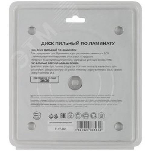 Диск пильный для циркулярных пил по ламинату 165x30x48T + кольцо 30/20 мм