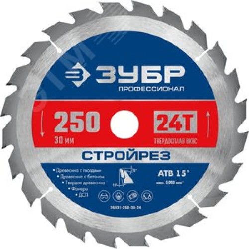 Диск пильный по строительной древесине Стройрез 250х30мм 24Т