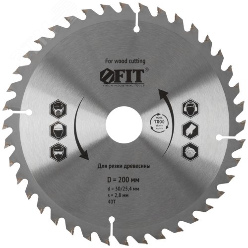Диск пильный для циркулярных пил по дереву 200x30/25.4x40T