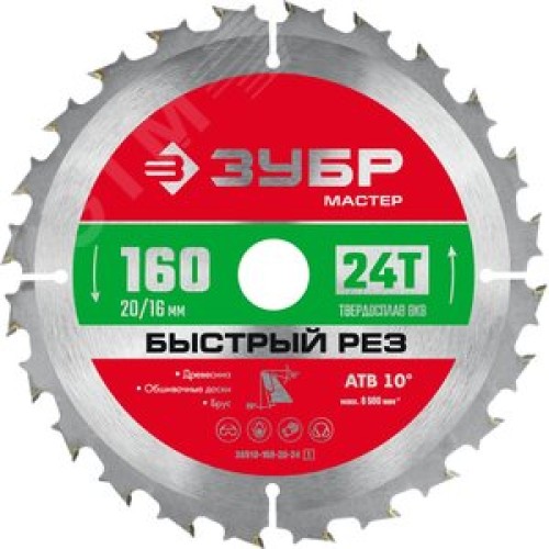 Диск пильный по дереву, 160x20/16мм 24Т, Быстрый рез