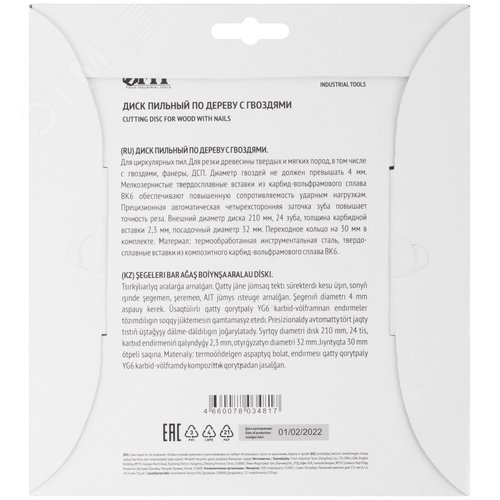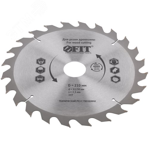 Диск пильный для циркулярных пил по дереву, технический рез с гвоздями 210x32/30x24T