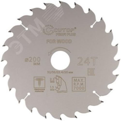 Диск пильный по дереву с тефлоновым покрытием 24Т, Profi plus, 200x1,5/2,2x32/30/25,4/20 мм
