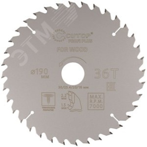 Диск пильный по дереву с тефлоновым покрытием 36Т, Profi plus, 190x1,5/2,2x30/25,4/20/16 мм