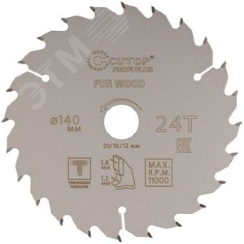 Диск пильный по дереву с тефлоновым покрытием 24Т, Profi plus, 140x1,2/1,8x20/16/12 мм