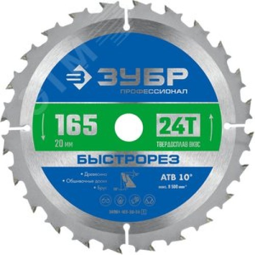 Диск пильный по дереву, 165x20мм 24Т, Быстрорез