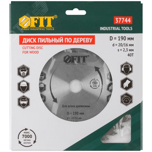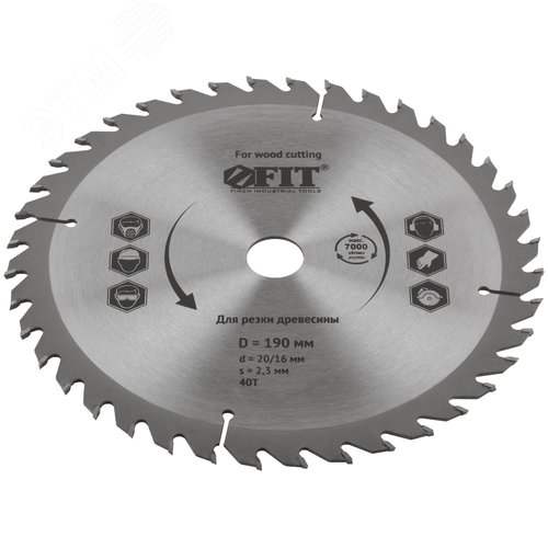 Диск пильный для циркулярных пил по дереву 190x20/16x40T