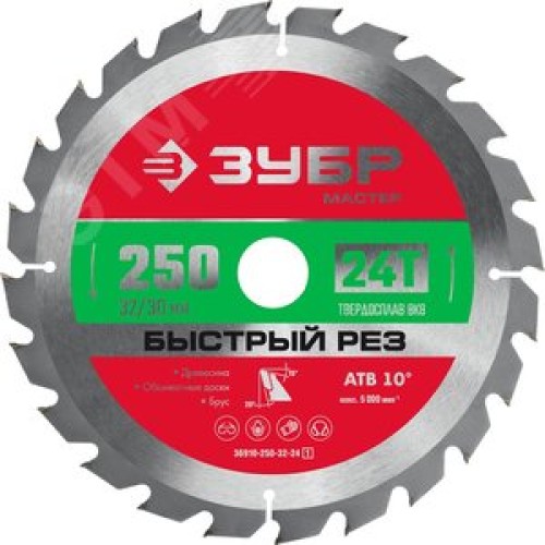 Диск пильный по дереву Быстрый рез, 250X32/30 мм, 24Т