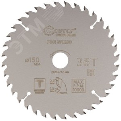Диск пильный по дереву с тефлоновым покрытием 36Т, Profi plus, 150x1,3/2,0x20/16/12 мм
