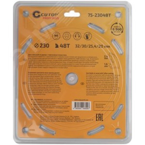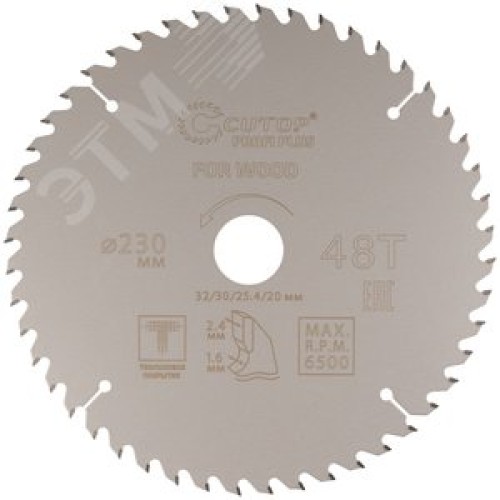 Диск пильный по дереву с тефлоновым покрытием 48Т, Profi plus, 230x1,6/2,4x32/30/25,4/20 мм