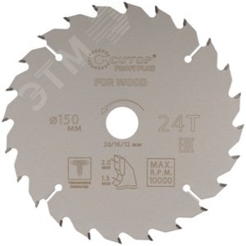 Диск пильный по дереву с тефлоновым покрытием 24Т, Profi plus, 150x1,3/2,0x20/16/12 мм