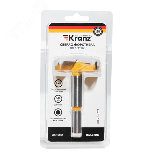 Сверло Форстнера по дереву, 50 мм, цилиндрический хвостовик