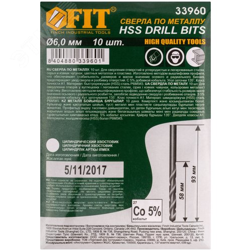 Сверла по металлу HSS с добавкой кобальта 5% Профи 6.0 мм (10 шт)