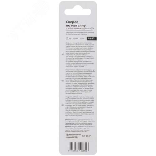 Сверло по металлу Cutop Profi с кобальтом 5% 3.9X75 мм, 2 шт
