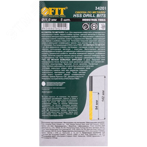 Сверла HSS по металлу, титановое покрытие 11.0 мм (5 шт)