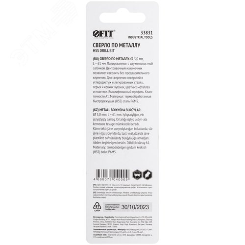 Сверло по металлу HSS полированное, центровочный наконечник, Р6М5, блистер 3,0х61 мм
