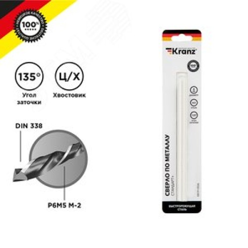 Сверло по металлу 8х117х75 мм Стандарт+ (P6M5 M-2) (1 шт. в блистере) DIN 338