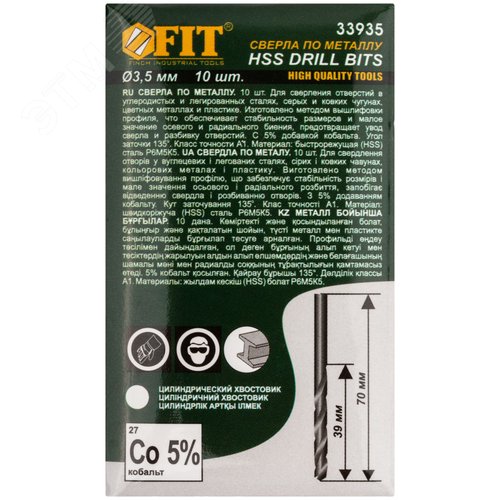 Сверла по металлу HSS с добавкой кобальта 5% Профи 3.5 мм (10 шт)