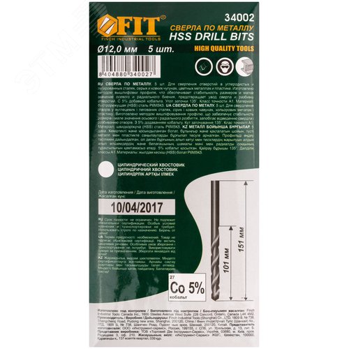 Сверла по металлу HSS с добавкой кобальта 5% Профи 12.0 мм (5 шт)