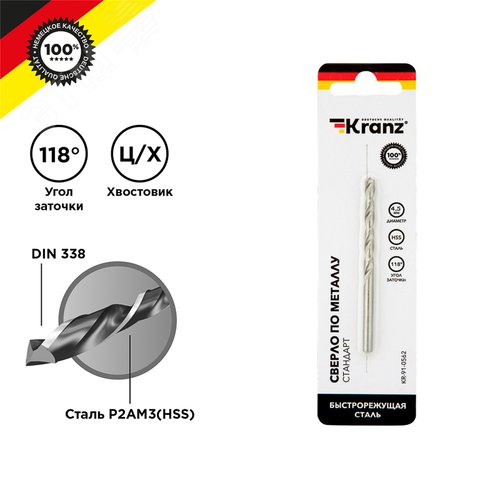 Сверло по металлу 4.5х80х47 мм HSS DIN 338