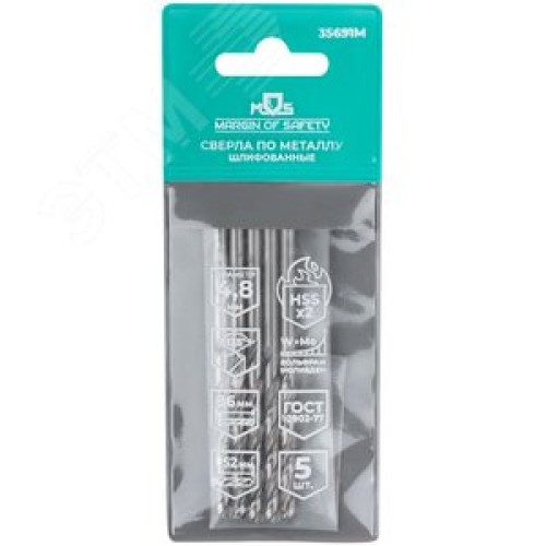 Сверла по металлу HSS шлифованные, угол заточки 135град, 4,8X86 мм (5 шт.)