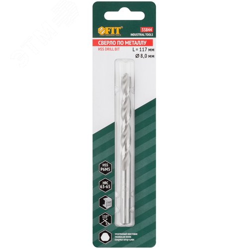 Сверло по металлу HSS полированное, центровочный наконечник, Р6М5, блистер 8,0х117 мм