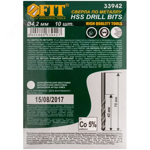 Сверла по металлу HSS с добавкой кобальта 5% Профи 4.2 мм (10 шт)
