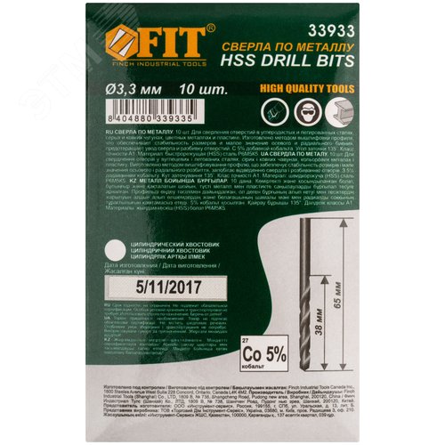 Сверла по металлу HSS с добавкой кобальта 5% Профи 3.3 мм (10 шт)