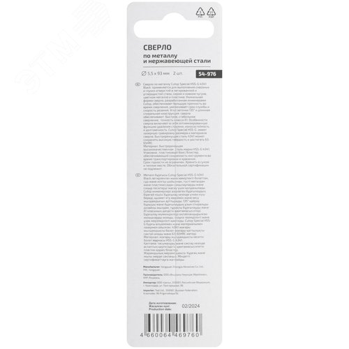 Сверло по металлу Special, HSS-G, 5,5x93/51 мм, 2 шт.