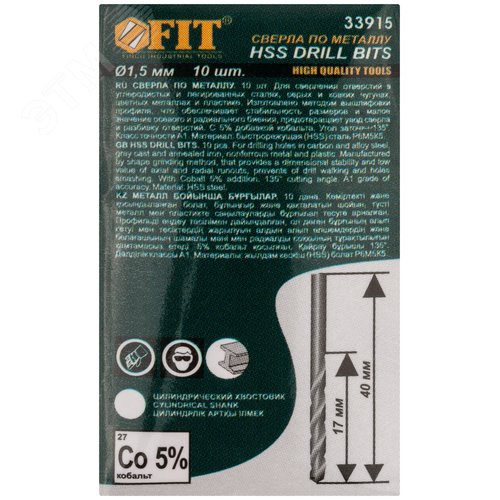 Сверла по металлу HSS с добавкой кобальта 5% Профи 1.5 мм (10 шт)