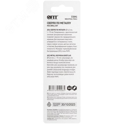 Сверло по металлу HSS полированное, центровочный наконечник, Р6М5, блистер 6,0х93 мм