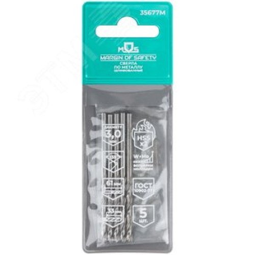 Сверла по металлу HSS шлифованные, угол заточки 135град, 3,0X61 мм (5 шт.)