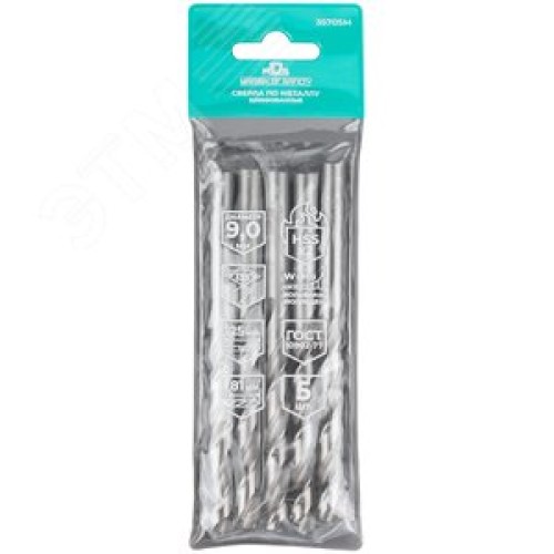Сверла по металлу HSS шлифованные, угол заточки 135град, 9,0X125 мм (5 шт.)
