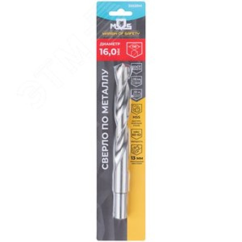 Сверло по металлу HSS в блистере, угол заточки 118град, 16,0X178 мм
