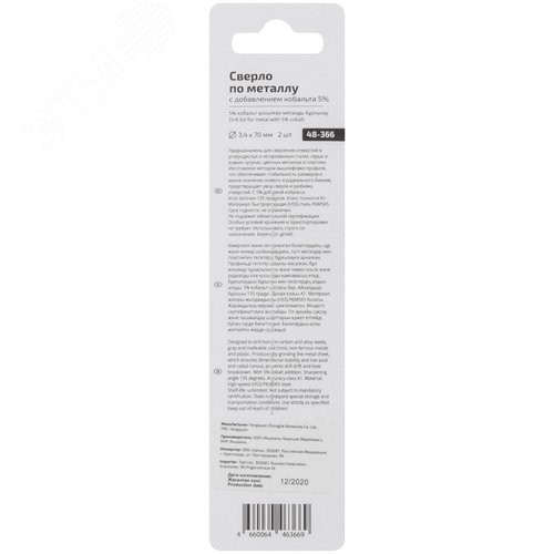Сверло по металлу Cutop Profi с кобальтом 5% 3.4X70 мм, 2 шт